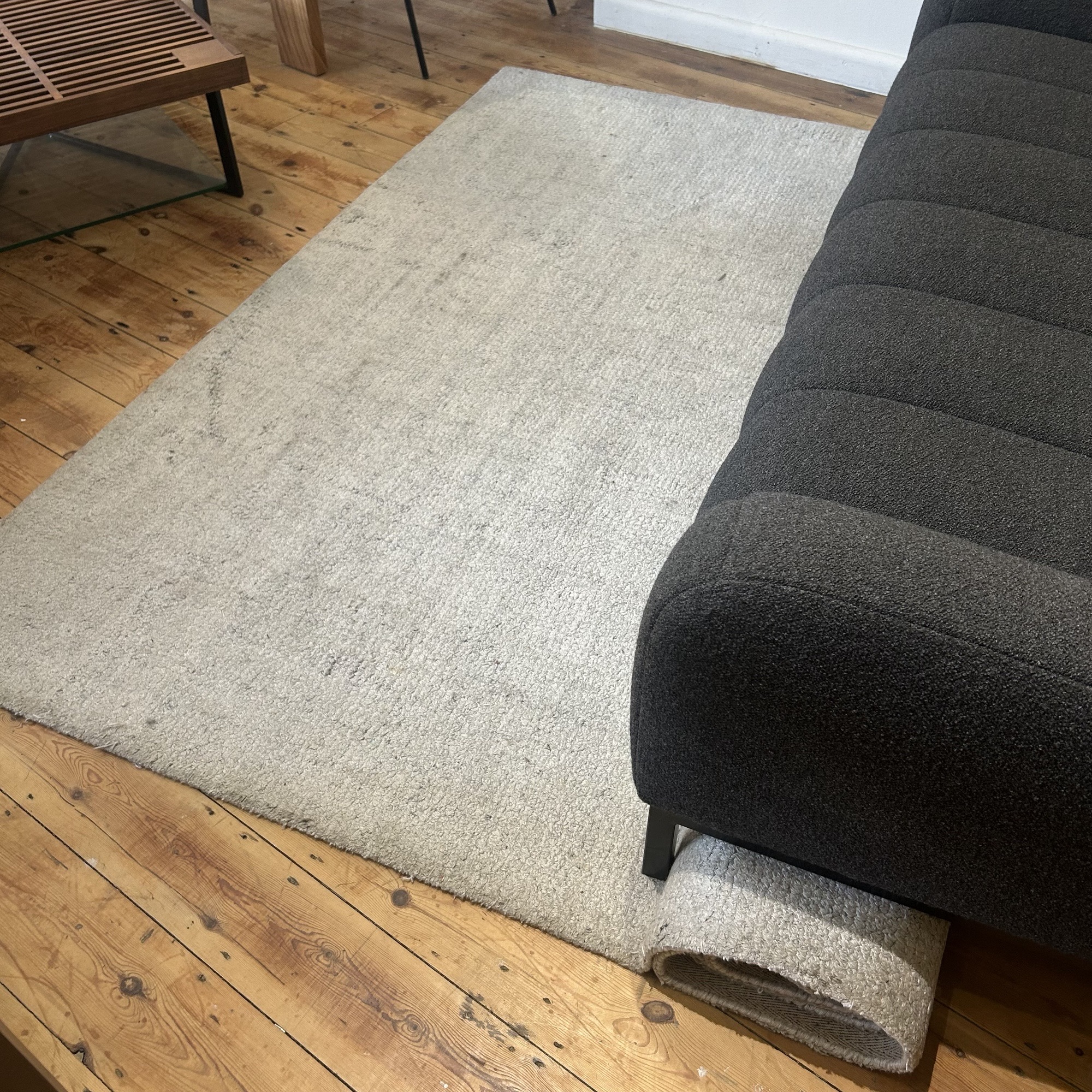 70% off Ex display Ligne Roset Fiber Wood rug in light grey.