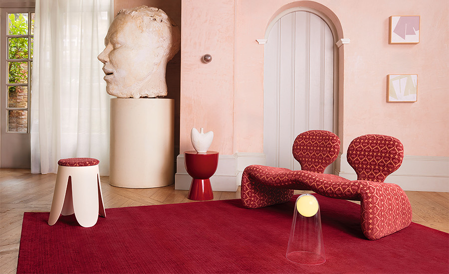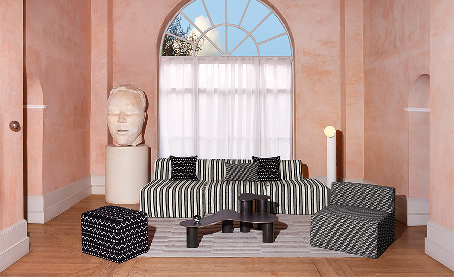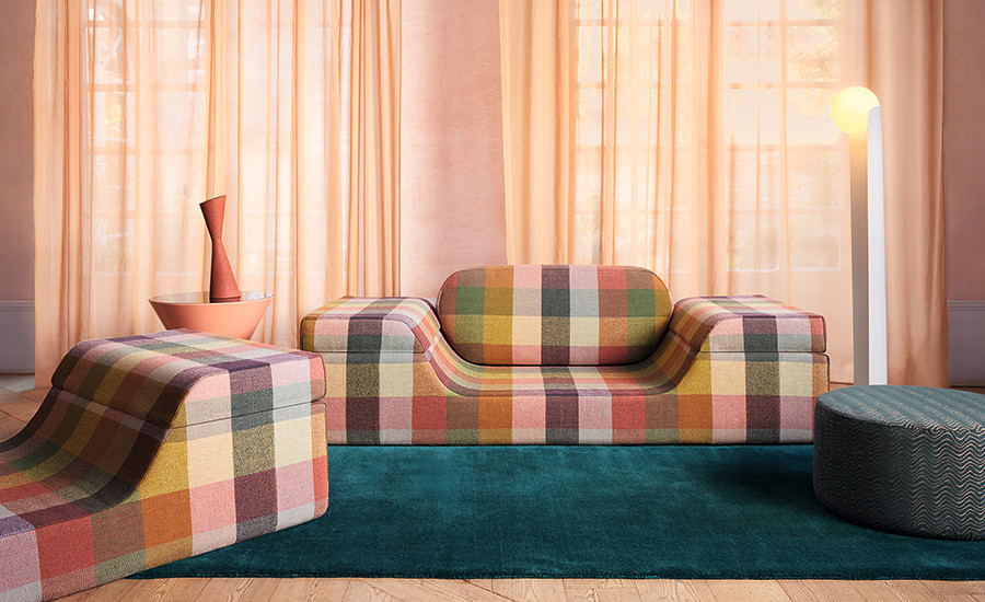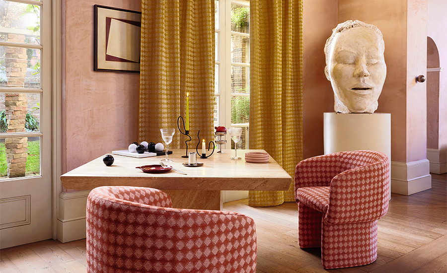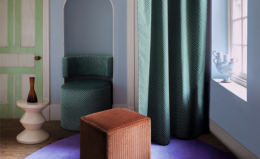 Like a deck of cards, this collection of responsibly sourced decorative textiles has a young royal vibe, conjuring thoughts of grand estates that are home to eccentric interiors. Evoking nostalgia with their playful patterns, graphic geometrics and organic shapes emerge as crisp cut and uncut velvets, soft chenilles and blankety weaves. With it’s vintage vibe, the collection celebrates the charm of bygone trends while presenting something new and exciting. Combining the modernisation of recycled and responsibly sourced yarns with classic inspiration is the essence of innovation. A colour palette to match; regal, jewel-like shades and retro inspired tones are captivating and playfully sophisticated. Book available to see in the showroom.
