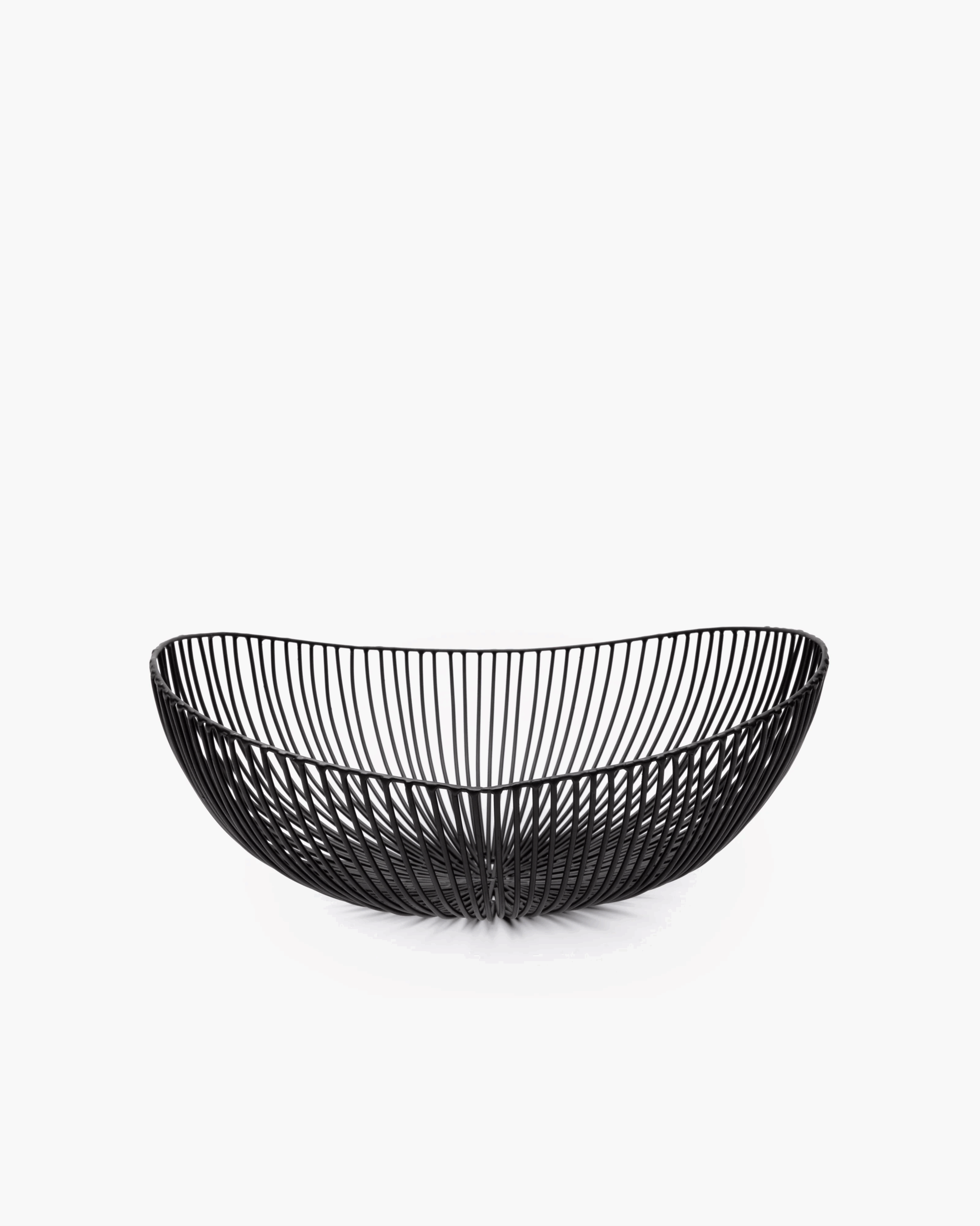 Oval dish or wire basket in black. Meo combines design with practicality.